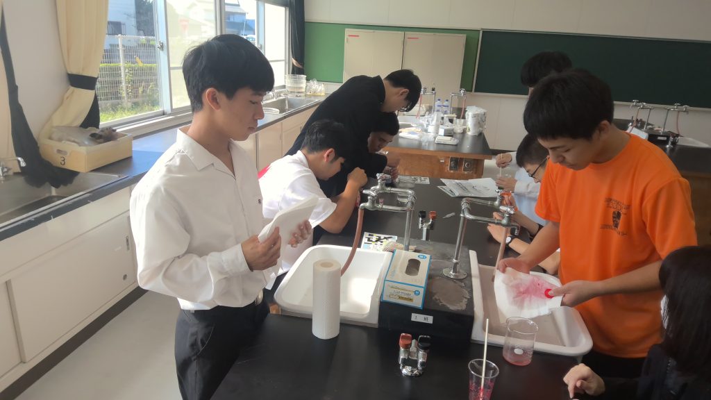 科学部 2026年3月17日 科学部では、自分たちでやってみたい実験を実際に行っています。令和7年度は、コーラ作りや割れにくいシャボン玉の研究などを行いました。また、文化祭では、「なんちゃってスーパーボール」作りのワークショップを行いました。 文化祭でのワークショップの様子