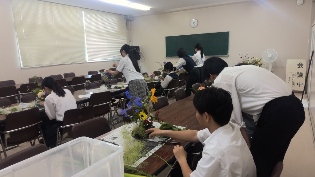 茶華道部は専門の先生の熱心な指導のもとに、宗偏流のお点前を身につけるとともに、生け花の基礎を学んでいます。